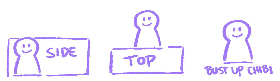 ✧ You can choose between these options (Side, Top or Bust-up chibi) ✧